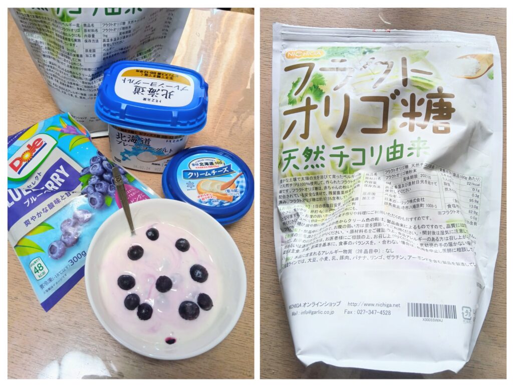 私は、ヨーグルトにブルーベリーとフラクトオリゴ糖を入れて食べたり、豆乳に溶かして飲んだりしています。デザート感覚で美味しく続けられるのが一番です。フラクトオリゴ糖は、綿あめのような味がします。